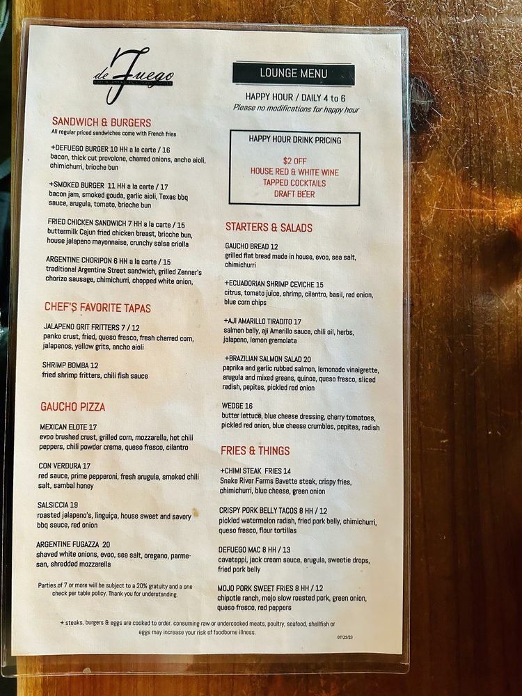 The menu at de Fuego features a variety of delicious dishes, such as the meat board, prosciutto, mole tacos, and the Mesa Brunch Burger. Diners have also enjoyed the flavorful cocktails and gluten-free options available. Despite some minor setbacks with orders, the overall dining experience at de Fuego is highly recommended for those looking for a memorable meal in a chic setting.